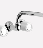 Grifería Cocina – Bicomando Grifería Cocina – Bicomando Grifería Cocina – Bicomando Cod.: 55-010 – Línea Laza – Grifería Cocina Pared Embutir Pico Alto